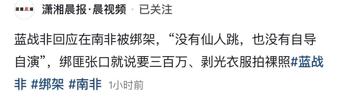 突发!知名网红蓝战非在南非开普敦被绑架!